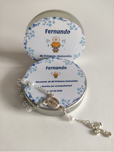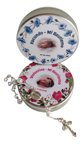 Latitas Pesonalizadas con Mini Rosario ideal para regalar como souvenir en bautismos, comuniones, confirmaciones y ocasiones especiales.