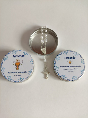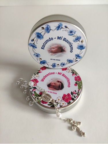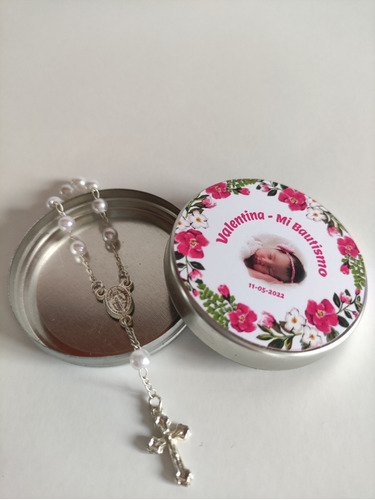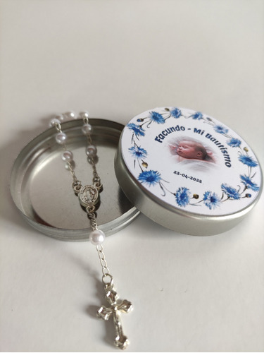 Latitas Pesonalizadas con Mini Rosario ideal para regalar como souvenir en bautismos, comuniones, confirmaciones y ocasiones especiales.