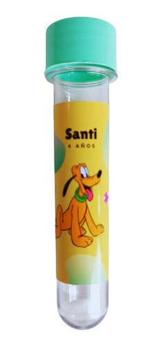 Tubitos Personalizados de Acrílico ideal para regalar como sorpresitas y souvenir en cumpleaños infantiles.